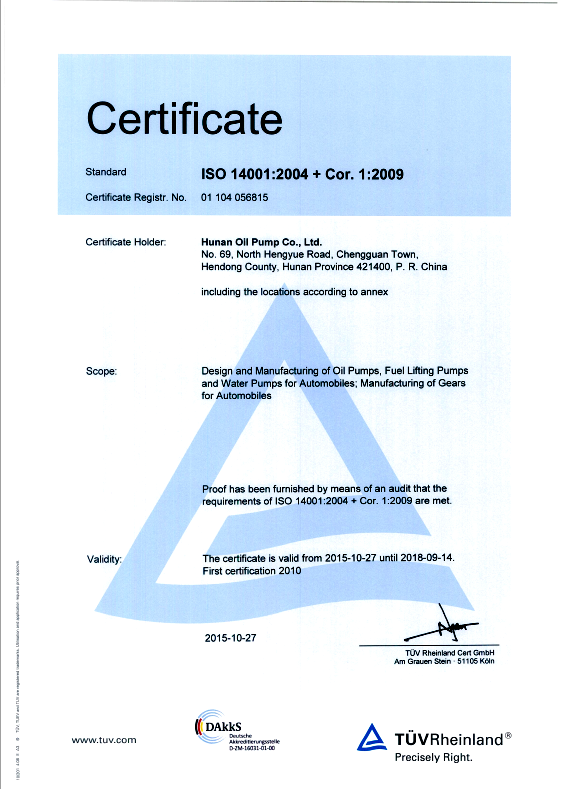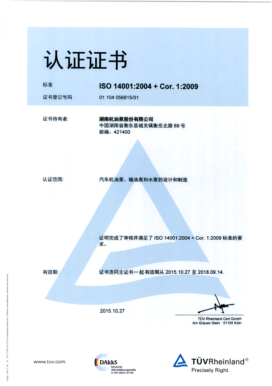 Environmental certificate
