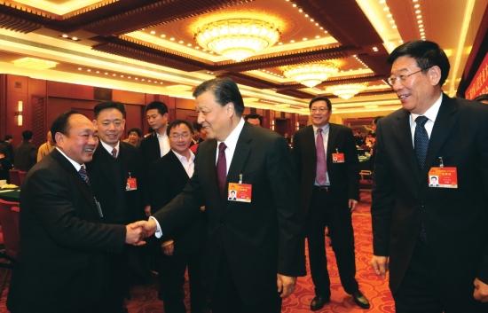 據湖南日報報道:2015年3月9日上午,人民大會堂東大廳春意盎然。中共中央政治局常委、中央書記處書記劉云山來到湖南機油泵股份有限公司,出席湖南代表團第四次全體會議,同代表們一起審議政府工作報告和全國人大常委會工作報告。圖為劉云山與我湖南機油泵股份有限公司董事長許仲秋親切握手。